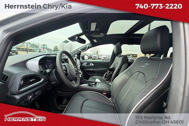 Herrnstein Auto Group is pumped up to offer this 2026 Chrysler Pacifica Limited in Silver Mist Clearcoat with Black Leather. This Pacifica is very well equipped with Quick Order Package 27P, S Appearance Package (Anodized Ink Badging, Black Day Light Opening Moldings, Black Stow 'N Place Roof Rack, Gloss Black Exterior Mirrors, Nappa Leather Bucket Seats with S Logo, Premium Fascia Upper/Lower Grille with Black Surround, Premium Rear Fascia Black, S Badge, and Wheels: 20 x 7.5 S-Model Aluminum Design 1), 13 Speakers, 18 x 7.5 Painted Aluminum Wheels, 3.25 Axle Ratio, 3rd row seats: split-bench, 4-Wheel Disc Brakes, ABS brakes, Air Conditioning, Alloy wheels, AM/FM radio: SiriusXM 360L, Apple CarPlay/Android Auto, Audio memory, Auto-dimming Rear-View mirror, Automatic temperature control, Black Seats, Brake assist, Bumpers: body-color, Compass, Delay-off headlights, Driver door bin, Driver vanity mirror, Driver's Seat Mounted Armrest, Dual front impact airbags, Dual front side impact airbags, Electronic Stability Control, Emergency communication system: Chrysler Connect, Four wheel independent suspension, Front anti-roll bar, Front Bucket Seats, Front dual zone A/C, Front fog lights, Front reading lights, Fully automatic headlights, Garage door transmitter, Heated door mirrors, Heated front seats, Heated rear seats, Heated steering wheel, Illuminated entry, Integrated Active Noise Cancellation, Knee airbag, Low tire pressure warning, Memory seat, Nappa Leather Bucket Seats, Navigation System, Occupant sensing airbag, Outside temperature display, Overhead airbag, Overhead console, Panic alarm, ParkView Rear Back-Up Camera, Passenger door bin, Passenger seat mounted armrest, Passenger vanity mirror, Power door mirrors, Power driver seat, Power Liftgate, Power moonroof, Power passenger seat, Power steering, Power windows, Radio data system, Radio: Uconnect 5 Nav with 10.1 Display, Rain sensing wipers, Rear air conditioning, Rear reading lights, Rear window defroster, Rear window wiper, Reclining 3rd row seat, Remote keyless entry, Roof rack, Security system, Speed control, Split folding rear seat, Spoiler, Steering wheel mounted audio controls, Tachometer, Telescoping steering wheel, Tilt steering wheel, Touring Suspension, Traction control, Trip computer, Turn signal indicator mirrors, Variably intermittent wipers, Ventilated front seats, and Voltmeter. 19/28 City/Highway MPG
