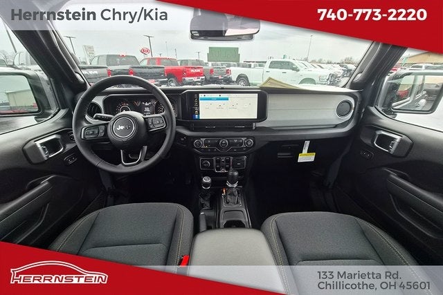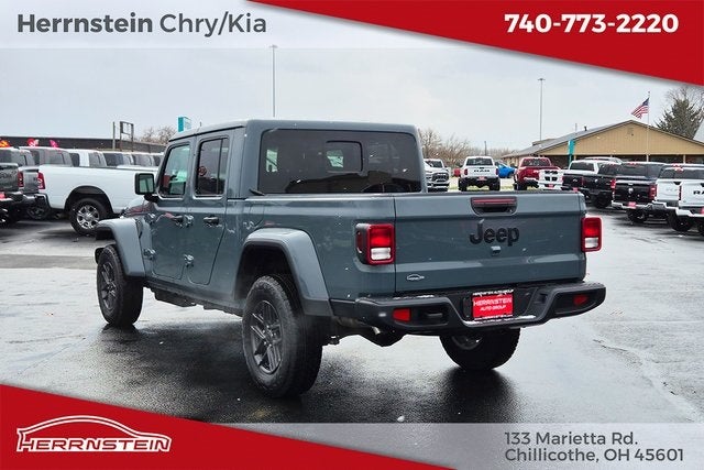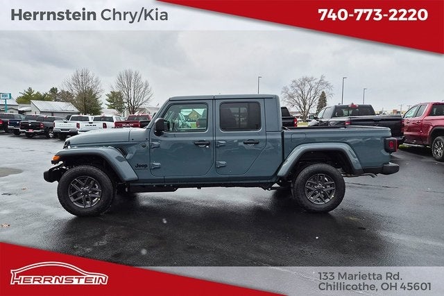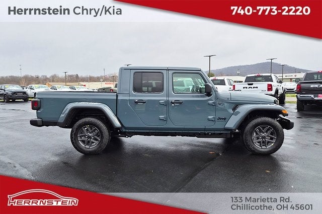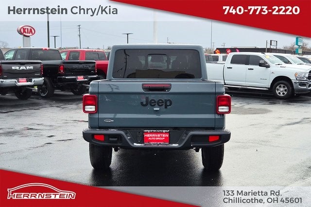 Herrnstein Auto Group is very proud to offer this 2026 Jeep Gladiator Sport S in Anvil Clearcoat with Black Cloth. This Gladiator is very well equipped with Dark Sky Appearance Package (Daytime Running Lamp System and Performance Hood), Quick Order Package 24S Sport S (Advanced Brake Assist, Automatic Headlamps, Deep Tint Sunscreen Windows, Full Speed Forward Collision Warning Plus, Normal Duty Plus Suspension, Power Heated Mirrors, Premium Wrapped Steering Wheel, Security Alarm, and Wheels: 17 x 7.5 Gray), 3.73 Rear Axle Ratio, 4-Wheel Disc Brakes, 8 Speakers, ABS brakes, Air Conditioning, AM/FM radio: SiriusXM with 360L, Apple CarPlay/Android Auto, Body Color 3-Piece Hard Top, Brake assist, Cloth Low-Back Bucket Seats, Compass, Delay-off headlights, Driver door bin, Driver vanity mirror, Dual front impact airbags, Dual front side impact airbags, Electronic Stability Control, Freedom Panel Storage Bag, Front anti-roll bar, Front Bucket Seats, Front Center Armrest w/Storage, Front fog lights, Front License Plate Bracket, Front reading lights, Illuminated entry, Integrated roll-over protection, Low tire pressure warning, Manufacturer's Statement of Origin, MOPAR All-Weather Slush Mats, Normal Duty Suspension, Occupant sensing airbag, Outside temperature display, Overhead airbag, Panic alarm, ParkView Rear Back-Up Camera, Passenger door bin, Passenger vanity mirror, Power steering, Power windows, Radio data system, Rear anti-roll bar, Rear reading lights, Rear Sliding Window, Rear Window Defroster, Remote keyless entry, Speed control, Split folding rear seat, Steering wheel mounted audio controls, Tachometer, Telescoping steering wheel, Tilt steering wheel, Traction control, Trip computer, Variably intermittent wipers, Voltmeter, and Wheels: 17 x 7.5 Black Steel Styled. 17/22 City/Highway MPG