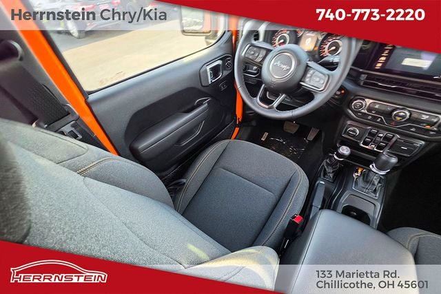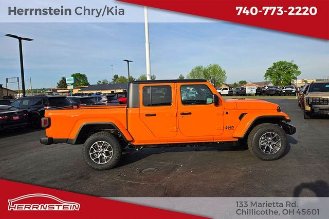 Herrnstein Auto Group is very proud to offer this 2026 Jeep Gladiator Sport S in Joose with Black Cloth. This Gladiator is very well equipped with Dark Sky Appearance Package (2-Piece Body Color Fender Flares, Daytime Running Lamp System, Mold in Color Bumper with Gloss Black, and Performance Hood), LED Headlamp and Fog Lamp Group (Daytime Running Lamps LED Accents, Front LED Fog Lamps, and LED Premium Reflector Headlamps), Quick Order Package 24S Sport S (Advanced Brake Assist, Automatic Headlamps, Deep Tint Sunscreen Windows, Full Speed Forward Collision Warning Plus, Normal Duty Plus Suspension, Power Heated Mirrors, Premium Wrapped Steering Wheel, Security Alarm, Sun Visors with Illuminated Vanity Mirrors, and Wheels: 17 x 7.5 Gray), 110 Mph Vehicle Max Speed Calibration, 12.3 Touchscreen Display, 3.73 Rear Axle Ratio, 4-Wheel Disc Brakes, 4G LTE Wi-Fi Hot Spot, 8 Speakers, ABS brakes, Air Conditioning, Alexa Built-in, AM/FM radio: SiriusXM with 360L, Apple CarPlay, Apple CarPlay/Android Auto, Black 3-Piece Hard Top, Brake assist, Compass, Connectivity - US/Canada, Delay-off headlights, Driver door bin, Driver vanity mirror, Dual front impact airbags, Dual front side impact airbags, Electronic Stability Control, For Details, Visit DriveUconnect.com, Freedom Panel Storage Bag, Front anti-roll bar, Front Bucket Seats, Front Center Armrest w/Storage, Front fog lights, Front License Plate Bracket, Front reading lights, Google Android Auto, Illuminated entry, Integrated Center Stack Radio, Integrated roll-over protection, Low tire pressure warning, Manufacturer's Statement of Origin, MOPAR All-Weather Slush Mats, Normal Duty Suspension, Occupant sensing airbag, Outside temperature display, Overhead airbag, Panic alarm, ParkView Rear Back-Up Camera, Passenger door bin, Passenger vanity mirror, Power steering, Power windows, Radio data system, Radio: Uconnect 5 with 12.3 Display, Rear anti-roll bar, Rear reading lights, Rear Sliding Window, Rear Window Defroster, Remote keyless entry, SiriusXM Radio Service, SiriusXM with 360L, Speed control, Split folding rear seat, Steering wheel mounted audio controls, Tachometer, Telescoping steering wheel, Tilt steering wheel, Traction control, Trip computer, USB Host Flip, Variably intermittent wipers, Voltmeter, Wheels: 17 x 7.5 Black Steel Styled, and Wheels: 17 x 7.5 Machined with Black Pockets. 17/22 City/Highway MPG
