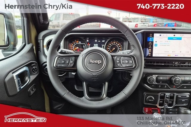 Herrnstein Auto Group is pumped up to offer this 2026 Jeep Gladiator Willys in Pj5 with Black Cloth. This Gladiator is very well equipped with Quick Order Package 24W Willys (4-Wheel Drive Decal, Advanced Brake Assist, Automatic Headlamps, Auxiliary Switches, Class IV Receiver Hitch, Cluster 7.0 TFT Color Display, Corning Gorilla Glass, Daytime Running Lamps LED Accents, Deep Tint Sunscreen Windows, E-Locker Rear Axle, Front Door Locks 2-Door Passive Entry, Front Heavy Duty Red Accent Shock Absorbers, Front LED Fog Lamps, Full Speed Forward Collision Warning Plus, Heavy-Duty Engine Cooling, LED Premium Reflector Headlamps, LED Taillamps, MOPAR All-Weather Slush Mats, Off-Road Plus Mode, Power Heated Mirrors, Premium Wrapped Steering Wheel, Protection Sill Rails, Rear Heavy Duty Red Accent Shock Absorbers, Security Alarm, Trailer Hitch Zoom, Wheels: 17 x 7.5 Painted Black, Willys Hood Decal, and Willys Suspension), 3.73 Rear Axle Ratio, 4-Wheel Disc Brakes, 8 Speakers, ABS brakes, Air Conditioning, AM/FM radio: SiriusXM with 360L, Apple CarPlay/Android Auto, Black 3-Piece Hard Top, Brake assist, Cloth Low-Back Bucket Seats, Compass, Delay-off headlights, Driver door bin, Driver vanity mirror, Dual front impact airbags, Dual front side impact airbags, Electronic Stability Control, Freedom Panel Storage Bag, Front anti-roll bar, Front Bucket Seats, Front Center Armrest w/Storage, Front fog lights, Front License Plate Bracket, Front reading lights, Illuminated entry, Integrated roll-over protection, Low tire pressure warning, Manufacturer's Statement of Origin, MOPAR Plastic Door Sill Guards, Normal Duty Suspension, Occupant sensing airbag, Outside temperature display, Overhead airbag, Panic alarm, ParkView Rear Back-Up Camera, Passenger door bin, Passenger vanity mirror, Power steering, Power windows, Radio data system, Rear anti-roll bar, Rear reading lights, Rear Sliding Window, Rear Window Defroster, Remote keyless entry, Speed control, Split folding rear seat, Steering wheel mounted audio controls, Tachometer, Telescoping steering wheel, Tilt steering wheel, Traction control, Trip computer, Variably intermittent wipers, Voltmeter, and Wheels: 17 x 7.5 Black Steel Styled. 17/22 City/Highway MPG