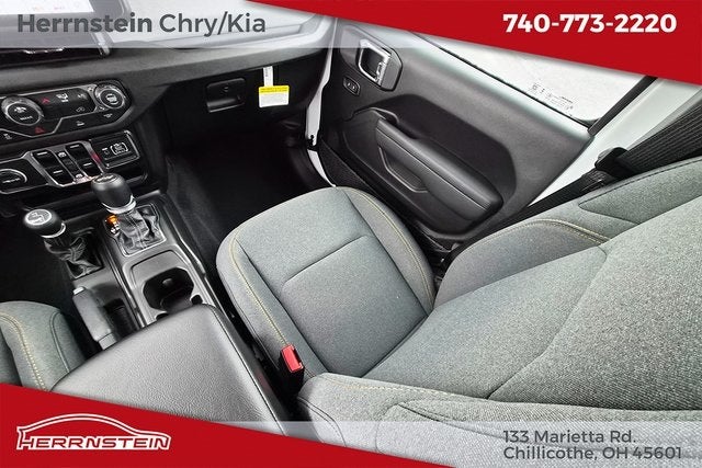 Herrnstein Auto Group is excited to offer this 2026 Jeep Wrangler Sport S in Bright White Clearcoat with Black Cloth. This Wrangler is very well equipped with Quick Order Package 24S Sport S (Advanced Brake Assist, Automatic Headlamps, Corning Gorilla Glass, Deep Tint Sunscreen Windows, Enhanced Adaptive Cruise Control, Full Speed Forward Collision Warning Plus, Power Heated Mirrors, Premium Wrapped Steering Wheel, Security Alarm, Sun Visors with Illuminated Vanity Mirrors, and Wheels: 17 x 7.5 Gray), 12.3 Touchscreen Display, 3.45 Overall Top Gear Ratio, 4-Wheel Disc Brakes, 4G LTE Wi-Fi Hot Spot, 8 Speakers, ABS brakes, Air Conditioning, AM/FM radio: SiriusXM with 360L, Apple CarPlay, Apple CarPlay/Android Auto, Aux Battery, Brake assist, Cloth Low-Back Bucket Seats, Compass, Connectivity - US/Canada, Delay-off headlights, Driver door bin, Driver vanity mirror, Dual front impact airbags, Dual front side impact airbags, Electronic Stability Control, For More Info, Call 800-643-2112, Front anti-roll bar, Front Bucket Seats, Front Center Armrest w/Storage, Front fog lights, Front reading lights, Google Android Auto, Illuminated entry, Integrated Center Stack Radio, Integrated roll-over protection, Low tire pressure warning, MOPAR All-Weather Floor Mats, MOPAR Multi-Function Accessory Rail, Non-Lock Fuel Cap Without Discriminator, Normal Duty Suspension, Occupant sensing airbag, Outside temperature display, Overhead airbag, Panic alarm, ParkView Rear Back-Up Camera, Passenger door bin, Passenger vanity mirror, Power steering, Power Top Quarter Window Storage Bag, Power windows, Radio data system, Radio: Uconnect 5 with 12.3 Display, Rear anti-roll bar, Rear reading lights, Rear Window Defroster, Rear Window Wiper/Washer, Remote keyless entry, Removable Rear Quarter Windows, SiriusXM Radio Service, SiriusXM with 360L, Speed control, Split folding rear seat, Steering wheel mounted audio controls, Stop-Start Dual Battery System, Tachometer, Telescoping steering wheel, Tilt steering wheel, Traction control, Trip computer, Variably intermittent wipers, Wheels: 17 x 7.5 Black Steel Styled, and Wheels: 17 x 7.5 Machined with Black Pockets. 18/23 City/Highway MPG