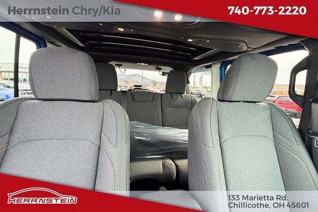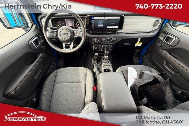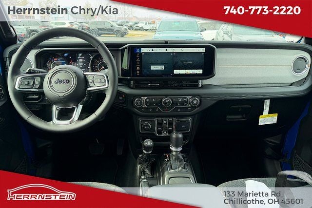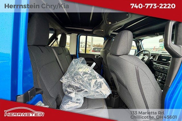 Herrnstein Auto Group is pumped up to offer this 2026 Jeep Wrangler Sahara in Hydro Blue Pearl Coat with Black Cloth. This Wrangler is very well equipped with Quick Order Package 22G, 12.3 Touchscreen Display, 3.45 Overall Top Gear Ratio, 4-Wheel Disc Brakes, 4G LTE Wi-Fi Hot Spot, 8 Speakers, ABS brakes, Air Conditioning, Alloy wheels, AM/FM radio: SiriusXM with 360L, Apple CarPlay, Apple CarPlay/Android Auto, Automatic temperature control, Aux Battery, Brake assist, Cloth Low-Back Bucket Seats, Compass, Connectivity - US/Canada, Delay-off headlights, Driver door bin, Driver vanity mirror, Dual front impact airbags, Dual front side impact airbags, Electronic Stability Control, Emergency communication system: Jeep Connect, For More Info, Call 800-643-2112, Front anti-roll bar, Front Bucket Seats, Front Center Armrest w/Storage, Front dual zone A/C, Front fog lights, Front License Plate Bracket, Front reading lights, Fully automatic headlights, Google Android Auto, Heated door mirrors, Heated front seats, Heated steering wheel, Heavy Duty Suspension with Gas Shocks, Illuminated entry, Integrated Center Stack Radio, Integrated roll-over protection, Low tire pressure warning, Non-Lock Fuel Cap Without Discriminator, Occupant sensing airbag, Outside temperature display, Overhead airbag, Panic alarm, ParkView Rear Back-Up Camera, Passenger door bin, Passenger vanity mirror, Power door mirrors, Power steering, Power Top Quarter Window Storage Bag, Power windows, Radio data system, Radio: Uconnect 5 with 12.3 Display, Rear anti-roll bar, Rear reading lights, Rear Window Defroster, Rear Window Wiper/Washer, Remote keyless entry, Removable Rear Quarter Windows, Security system, SiriusXM Radio Service, SiriusXM with 360L, Sky One-Touch Power Top, Speed control, Split folding rear seat, Steering wheel mounted audio controls, Stop-Start Dual Battery System, Tachometer, Telescoping steering wheel, Tilt steering wheel, Traction control, Trip computer, Variably intermittent wipers, Voltmeter, and Wheels: 18 x 7.5 Machine/Painted Gray. 20/22 City/Highway MPG