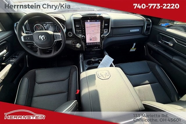 Herrnstein Auto Group is excited to offer this 2026 Ram 1500 Laramie in Canyon Lake with Black Leather. This 1500 is very well equipped with Laramie Level 1 Equipment Group (Rain Sensitive Windshield Wipers and Remote Tailgate Release), Night Edition (Accent Color Door Handles, Accent Color Premium Power Mirrors, Accent Color Tailgate Handle, Anti-Spin Differential Rear Axle, Auto Power-Folding Mirrors, Auto-Dimming Exterior Driver Mirror, Black Exterior Truck Badging, Black Headlamp Bezels, Black Interior Accents, Black Painted Exterior Mirrors Caps, Black Tail Lamp Bezels, Body Color Front Bumper, Body Color Rear Bumper with Step Pads, Convex Wide-Angle Exterior Mirror Insert, Dual Exhaust with Black Tips, Exterior Mirrors Approach Lamps, Exterior Mirrors Courtesy Lamps, Exterior Mirrors with Heating Element, Exterior Mirrors with Memory, Exterior Mirrors with Supplemental Signals, Grille Surround 3 Black Texture 2 Black, Pirelli Brand Tires, Proximity Approach/Departure Lamps, RAM Grille Badge - Black, Sport Performance Hood, and Wheels: 22 x 9 Forged Aluminum), Quick Order Package 27H Laramie, 10 Speakers, 4-Wheel Disc Brakes, 4G LTE Wi-Fi Hot Spot, ABS brakes, Active Noise Control System, Adjustable pedals, Air Conditioning, Alloy wheels, AM/FM radio: SiriusXM with 360L, Apple CarPlay/Android Auto, Audio memory, Auto High-beam Headlights, Auto-dimming door mirrors, Auto-dimming Rear-View mirror, Automatic temperature control, Brake assist, Bumpers: chrome, Chrome Exterior Mirrors, Compass, Connected Travel and Traffic Services, Connectivity - US/Canada, Delay-off headlights, Driver door bin, Driver vanity mirror, Dual front impact airbags, Dual front side impact airbags, Electronic Stability Control, Front anti-roll bar, Front Bucket Seats, Front Center Armrest w/Storage, Front dual zone A/C, Front fog lights, Front License Plate Bracket, Front reading lights, Front wheel independent suspension, Fully automatic headlights, Garage door transmitter, GPS Navigation, Heated door mirrors, Heated front seats, Heated rear seats, Heated steering wheel, Illuminated entry, Integrated Center Stack Radio, Integrated Voice Command with Bluetooth®, Leather steering wheel, Leather Trimmed Bucket Seats, Low tire pressure warning, Manufacturer's Statement of Origin, Memory seat, MOPAR Front and Rear Rubber Floor Mats, Navigation System, Occupant sensing airbag, Off-Road Information Pages, Outside temperature display, Overhead airbag, Overhead console, Panic alarm, ParkView Rear Back-Up Camera, Passenger door bin, Passenger vanity mirror, Pedal memory, Power door mirrors, Power driver seat, Power passenger seat, Power steering, Power windows, Radio data system, Radio: Uconnect 5 Navigation with 12.0 Display, RAM Grille Badge - Chrome, Rear anti-roll bar, Rear reading lights, Rear seat center armrest, Rear step bumper, Rear Wheelhouse Liners, Remote keyless entry, Security system, SiriusXM Radio Service, SiriusXM with 360L, Speed control, Split folding rear seat, Steering wheel mounted audio controls, Tachometer, Telesco