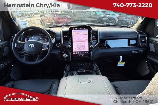 Herrnstein Auto Group is proud to offer this 2026 Ram 1500 Rebel in Canyon Lake with Black Leather. This 1500 is very well equipped with Bed Utility Group (Exterior 115V AC Outlet, MOPAR 4 Adjustable Cargo Tie-Down Hooks, and MOPAR Spray in Bedliner), Quick Order Package 21W Rebel, Rebel Level 2 Equipment Group (115V Auxiliary Rear Power Outlet, 14.4 Touchscreen Display, 2-Door Passive Entry, Front Door Locks, 4G LTE Wi-Fi Hot Spot, Accent Color Door Handles, Accent Color Premium Power Mirrors, Accent Color Tailgate Handle, Apple CarPlay, Auto Power-Folding Mirrors, Auto-Dimming Exterior Driver Mirror, Black Painted Exterior Mirrors Caps, Connected Travel and Traffic Services, Connectivity - US/Canada, Convex Wide-Angle Exterior Mirror Insert, Disassociated Touchscreen Display, Driver Seat Memory, Dual Wireless Charging Pad, Exterior Mirrors Approach Lamps, Exterior Mirrors Courtesy Lamps, Exterior Mirrors with Heating Element, Exterior Mirrors with Memory, Exterior Mirrors with Supplemental Signals, Front Passenger Interactive Display, Global Telematics Box Module, Google Android Auto, GPS Antenna Input, GPS Navigation, Harman/Kardon 19 Speaker Premium Sound, HD Radio, Heated Second Row Seats, Integrated Center Stack Radio, Integrated Voice Command with Bluetooth®, Media Hub with 2 Charge Only USBs, Off-Road Information Pages, Power 2-Way Passenger Lumbar Adjust, Power Adjust 8-Way Front Passenger Seat, Power Adjustable Pedals with Memory, Power Tailgate, Proximity Approach/Departure Lamps, Radio: Uconnect 5 Nav with 14.4 Display, Radio/Driver Seat/Mirrors/Pedals Memory, Rain Sensitive Windshield Wipers, Rear Window Defroster, Security Alarm, SiriusXM Radio Service, SiriusXM with 360L, Smartphone as a Key Capable, and USB Host Flip), 10 Speakers, 3.92 Rear Axle Ratio, 4 Way Front Headrests, 4-Wheel Disc Brakes, ABS brakes, Active Noise Control System, Air Conditioning, Alloy wheels, AM/FM radio: SiriusXM with 360L, Apple CarPlay/Android Auto, Auto High-beam Headlights, Auto-dimming Rear-View mirror, Automatic temperature control, Black Exterior Mirrors, Brake assist, Bucket Seats, Cloth/Vinyl Bucket Seats, Compass, Delay-off headlights, Driver door bin, Driver vanity mirror, Dual front impact airbags, Dual front side impact airbags, Electronic Stability Control, Front anti-roll bar, Front Bucket Seats, Front Center Armrest w/Storage, Front dual zone A/C, Front fog lights, Front License Plate Bracket, Front reading lights, Front Seat Back Map Pockets, Front wheel independent suspension, Full Length Upgraded Floor Console, Fully automatic headlights, Garage door transmitter, Heated door mirrors, Heated Front Seats, Heated front seats, Heated Steering Wheel, Heated steering wheel, Illuminated entry, Leather steering wheel, Low tire pressure warning, Manual Folding Exterior Mirrors, Manufacturer's Statement of Origin, Navigation System, Occupant sensing airbag, Outside temperature display, Overhead airbag, Overhead console, Panic alarm, ParkView Rear Back-Up Camera, Passenger door bin, Passenger vanity mirror, Power 2-Way Driver Lumb