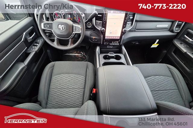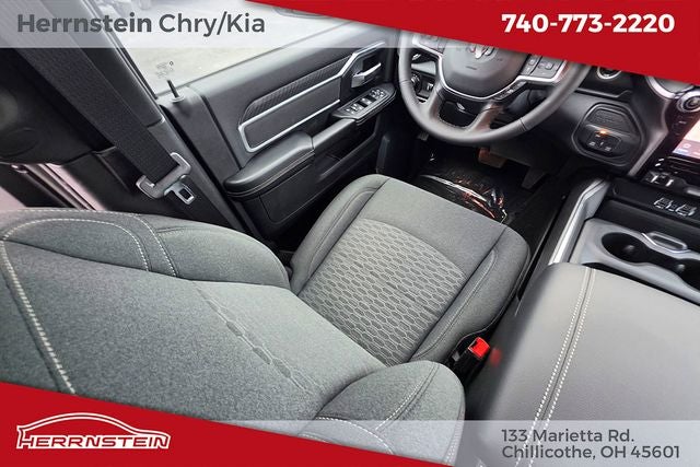 For added comfort and style, this Big Horn model comes equipped with dual-zone automatic climate control, heated power-folding mirrors, a power-adjustable driver's seat, and a premium cloth 40/20/40 split-bench seat. The exterior features a bold, eye-catching design with a gloss black grille, body-color bumpers, and 20-inch black painted aluminum wheels.