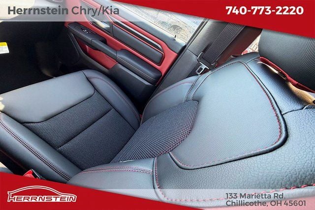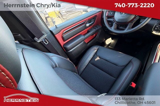 Herrnstein Auto Group is pumped up to offer this 2026 Ram 1500 Rebel in Diamond Black Crystal Pearlcoat with Black Cloth. This 1500 is very well equipped with Bed Utility Group (Exterior 115V AC Outlet, MOPAR 4 Adjustable Cargo Tie-Down Hooks, and MOPAR Spray in Bedliner), Quick Order Package 21W Rebel, Rebel Level 1 Equipment Group (Auto Power-Folding Mirrors, Auto-Dimming Exterior Driver Mirror, Black Exterior Mirrors, Black Premium Power Mirrors, Convex Wide-Angle Exterior Mirror Insert, Exterior Mirrors Courtesy Lamps, Exterior Mirrors with Heating Element, Exterior Mirrors with Supplemental Signals, Power Adjustable Pedals, Rear Window Defroster, Remote Tailgate Release, and Wireless Charging Pad), 10 Speakers, 3.92 Rear Axle Ratio, 4 Way Front Headrests, 4-Wheel Disc Brakes, 4G LTE Wi-Fi Hot Spot, ABS brakes, Active Noise Control System, Air Conditioning, Alloy wheels, AM/FM radio: SiriusXM with 360L, Apple CarPlay, Apple CarPlay/Android Auto, Auto High-beam Headlights, Auto-dimming Rear-View mirror, Automatic temperature control, Brake assist, Bucket Seats, Cloth/Vinyl Bucket Seats, Compass, Connected Travel and Traffic Services, Connectivity - US/Canada, Delay-off headlights, Disassociated Touchscreen Display, Driver door bin, Driver vanity mirror, Dual front impact airbags, Dual front side impact airbags, Electronic Stability Control, Front anti-roll bar, Front Bucket Seats, Front Center Armrest w/Storage, Front dual zone A/C, Front fog lights, Front License Plate Bracket, Front reading lights, Front Seat Back Map Pockets, Front wheel independent suspension, Full Length Upgraded Floor Console, Fully automatic headlights, Garage door transmitter, Global Telematics Box Module, Google Android Auto, GPS Antenna Input, GPS Navigation, HD Radio, Heated door mirrors, Heated Front Seats, Heated front seats, Heated Steering Wheel, Heated steering wheel, Illuminated entry, Integrated Center Stack Radio, Integrated Voice Command with Bluetooth®, Leather steering wheel, Low tire pressure warning, Manual Folding Exterior Mirrors, Manufacturer's Statement of Origin, Navigation System, Occupant sensing airbag, Off-Road Information Pages, Outside temperature display, Overhead airbag, Overhead console, Panic alarm, ParkView Rear Back-Up Camera, Passenger door bin, Passenger vanity mirror, Power 2-Way Driver Lumbar Adjust, Power Adjust 8-Way Driver Seat, Power door mirrors, Power driver seat, Power steering, Power windows, Radio data system, Radio: Uconnect 5 Navigation with 12.0 Display, Rear 60/40 Folding Seat, Rear anti-roll bar, Rear seat center armrest, Rear step bumper, Rear Wheelhouse Liners, Remote keyless entry, SiriusXM Radio Service, SiriusXM with 360L, Speed control, Split folding rear seat, Steering wheel mounted audio controls, Tachometer, Telescoping steering wheel, Tilt steering wheel, Traction control, Trailer Brake Control, Trip computer, USB Host Flip, Variably intermittent wipers, Voltmeter, and Wheels: 18 x 8.0 Painted Mid-Gloss Black. 18/24 City/Highway MPG