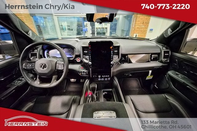Herrnstein Auto Group is proud to offer this 2026 Ram 1500 RHO in Diamond Black Crystal Pearlcoat with Black Leather. This 1500 is very well equipped with Quick Order Package 22Y RHO, RHO Level 1 Equipment Group (12-Way/1-Way Trailer Connector, 14.4 Touchscreen Display, 240 Amp Alternator, 4G LTE Wi-Fi Hot Spot, Connectivity - US/Canada, Disassociated Touchscreen Display, Driver Power Seat Back Massage, Driver Seat Memory, Driver/Passenger Wrapped Assist Handles, Drowsy Driver Detection, Dual Wireless Charging Pad, Evasive Steer Assist, Front Passenger Interactive Display, Front Passenger Power Seat Back Massage, Full Length Premium Upgraded Floor Console, GPS Navigation, Hands-Free Active Driving Assist System, HD Radio, Heads-Up Display, Heated Second Row Seats, Integrated Center Stack Radio, Intersection Collision Assist System, Leather/Carbon Flat-Bottom Steering Wheel, LED CHMSL Lamp, Luxury Front Door Trim Panel, Power Tailgate, Radio/Driver Seat/Mirrors/Pedals Memory, Rain Sensitive Windshield Wipers, Real Carbon Fiber Interior Accents, Rear 60/40 Folding Split Recline Seat, SiriusXM Radio Service, Surround View Camera System, Traffic Sign Recognition, USB Host Flip, Ventilated Front Seats, and Ventilated Rear Seats), Trailer Tow Group (Trailer Reverse Steering Control and Trailer Tire Pressure Monitoring System), 10 Speakers, 3.92 Rear Axle Ratio, 4-Wheel Disc Brakes, ABS brakes, Adaptive suspension, Adjustable pedals, Air Conditioning, Alloy wheels, AM/FM radio, Apple CarPlay/Android Auto, Auto High-beam Headlights, Auto Power-Folding Mirrors, Auto-dimming door mirrors, Auto-Dimming Exterior Driver Mirror, Auto-Dimming Exterior Passenger Mirror, Auto-dimming Rear-View mirror, Automatic temperature control, Black Exterior Mirrors, Black Power-Fold Trailer Tow Mirrors, Brake assist, Compass, Delay-off headlights, Driver door bin, Driver vanity mirror, Dual front impact airbags, Dual front side impact airbags, Electronic Stability Control, Exterior Mirrors Courtesy Lamps, Exterior Parking Camera Rear, Flareside Box, Front anti-roll bar, Front Bucket Seats, Front Center Armrest w/Storage, Front dual zone A/C, Front fog lights, Front License Plate Bracket, Front reading lights, Front wheel independent suspension, Fully automatic headlights, Garage door transmitter, Heated door mirrors, Heated front seats, Heated steering wheel, Illuminated entry, Leather Shift Knob, Leather steering wheel, Leather Trimmed Bucket Seats, Low tire pressure warning, Manufacturer's Statement of Origin, Mirror Clearance/Running Lights, MOPAR RHO Exterior Graphics, Navigation System, Occupant sensing airbag, Outside temperature display, Overhead airbag, Overhead console, Panic alarm, Passenger door bin, Passenger vanity mirror, Power door mirrors, Power driver seat, Power passenger seat, Power steering, Power Telescoping Mirrors, Power windows, Power-Adjustable Convex Aux Mirrors, Radio data system, Rear reading lights, Rear seat center armrest, Rear step bumper, Rear window defroster, Remote keyless entry, Security system, Speed control, Split foldi