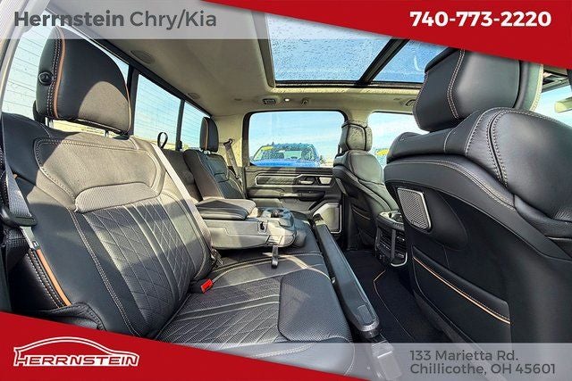 Herrnstein Auto Group is pumped up to offer this 2026 Ram 1500 Tungsten in Diamond Black Crystal Pearlcoat with Black Leather. This 1500 is very well equipped with Bed Utility Group (Exterior 115V AC Outlet, MOPAR 4 Adjustable Cargo Tie-Down Hooks, and Truck Bed Cargo Divider), Quick Order Package 22V Tungsten, Trailer Tow Group (Trailer Brake Control, Trailer Light Check, Trailer Reverse Steering Control, and Trailer Tire Pressure Monitoring System), 12-Way/1-Way Trailer Connector, 3.92 Rear Axle Ratio, 4-Wheel Disc Brakes, ABS brakes, Adjustable pedals, Air Conditioning, Alloy wheels, AM/FM radio, Apple CarPlay/Android Auto, Audio memory, Auto High-beam Headlights, Auto Power-Folding Mirrors, Auto-dimming door mirrors, Auto-Dimming Exterior Driver Mirror, Auto-Dimming Exterior Passenger Mirror, Auto-dimming Rear-View mirror, Auto-leveling suspension, Automatic temperature control, Bodyside moldings, Brake assist, Bumpers: body-color, Chrome Exterior Mirrors, Chrome Power-Fold Trailer Tow Mirrors, Compass, Delay-off headlights, Driver door bin, Driver vanity mirror, Dual front impact airbags, Dual front side impact airbags, Electronic Stability Control, Exterior Mirrors Courtesy Lamps, Exterior Mirrors with Heating Element, Exterior Mirrors with Memory, Exterior Mirrors with Supplemental Signals, Exterior Parking Camera Rear, Forward and Reverse Utility Lights, Front anti-roll bar, Front Bucket Seats, Front Center Armrest w/Storage, Front dual zone A/C, Front fog lights, Front License Plate Bracket, Front reading lights, Front wheel independent suspension, Fully automatic headlights, Garage door transmitter, Heads-Up Display, Heated door mirrors, Heated front seats, Heated rear seats, Heated steering wheel, Illuminated entry, Leather steering wheel, Low tire pressure warning, Manufacturer's Statement of Origin, Memory seat, Mirror Clearance/Running Lights, Multi-Function Tailgate, Navigation System, Occupant sensing airbag, Outside temperature display, Overhead airbag, Overhead console, Panic alarm, Passenger door bin, Passenger vanity mirror, Pedal memory, Power adjustable front head restraints, Power door mirrors, Power driver seat, Power moonroof, Power passenger seat, Power steering, Power Telescoping Mirrors, Power windows, Power-Adjustable Convex Aux Mirrors, Premium Leather Bucket Seats, Radio data system, Radio: Uconnect 5 Nav with 14.4 Display, Rain sensing wipers, RAM's Head Badge, Rear anti-roll bar, Rear reading lights, Rear seat center armrest, Rear step bumper, Rear window defroster, Remote keyless entry, Remote Tailgate Release, Security system, Speed control, Split folding rear seat, Steering wheel mounted audio controls, Tachometer, Telescoping steering wheel, Tilt steering wheel, Traction control, Trailer Tow Mirrors, Trip computer, Turn signal indicator mirrors, Variably intermittent wipers, Ventilated front seats, Ventilated rear seats, Voltmeter, and Wheels: 22 x 9 Polish/Painted with Inserts. 15/21 City/Highway MPG