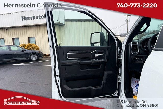 Herrnstein Auto Group is pleased to offer this 2026 Ram 2500 Big Horn in Bright White Clearcoat with Black Cloth. This 2500 is very well equipped with Big Horn Level 1 Plus Equipment Group (12 Touchscreen Display, 2 Way Rear Headrest Seat, 2nd Row in Floor Storage Bins, 4 Way Front Headrests, 40/20/40 Split Bench Seat, 4G LTE Wi-Fi Hot Spot, 9 Alpine Speakers with Subwoofer, Air Conditioning ATC with Dual Zone Control, Alexa Built-in, Anti-Spin Differential Rear Axle, Apple CarPlay, Auto Power-Folding Mirrors, Auto-Dimming Rear-View Mirror, Black Exterior Mirrors, Connected Travel and Traffic Services, Connectivity - US/Canada, Disassociated Touchscreen Display, Dual Glove Boxes, Emergency Vehicle Alert System (EVAS), Exterior Mirrors Courtesy Lamps, Exterior Mirrors with Heating Element, Exterior Mirrors with Supplemental Signals, Foam Bottle Insert (door Trim Panel), Folding Flat Load Floor Storage, Footwell Courtesy Lamp, For Details, Visit DriveUconnect.com, For More Info, Call 800-643-2112, Forward and Reverse Utility Lights, Front Armrest with Cupholders, Front Center Seat Cushion Storage, Front Seat Back Map Pockets, Global Telematics Box Module, Glove Box Lamp, Google Android Auto, GPS Antenna Input, GPS Navigation, HD Radio, Integrated Voice Command with Bluetooth®, LED Bed Lighting, Locking Lower Glove Box, Luxury Steering Wheel, Manual Adjust 4-Way Front Passenger Seat, Mirror Running Lights, MOPAR Deployable Bed Step, MOPAR Spray in Bedliner, Off-Road Info Pages, Power 2-Way Driver Lumbar Adjust, Power Adjust 8-Way Driver Seat, Power Adjust Mirrors, Power Heated Folding Telescopic Mirrors, Power Telescoping Mirrors, Power-Adjustable Convex Aux Mirrors, Premium Cloth 40/20/40 Bench Seat, Radio: Uconnect 5 Navigation with 12.0 Display, Rear 60/40 Folding Seat, Rear Dome with on/Off Switch Lamp, Remote Start System, Remote USB Port - Charge Only, Selectable Tire Fill Alert, SiriusXM Radio Service, SiriusXM with 360L, Steering Wheel Mounted Audio Controls, Storage Tray, and Trailer Tow Pages), Heated Seats and Wheel Group (Heated Front Seats and Heated Steering Wheel), Night Edition (Black Exterior Truck Badging, Black Interior Accents, Black Wheel Center Hub, Body Color Grille-Surround, Gloss Black Nostrils/Mic Black Grille, Painted Front Bumper, Painted Rear Bumper, and Wheels: 20 x 8.0 Black Painted Aluminum), Quick Order Package 2UZ Big Horn, 3.73 Axle Ratio, 4-Wheel Disc Brakes, 5th Wheel/Gooseneck Towing Prep Group, 6 Speakers, ABS brakes, Air Conditioning, Alloy wheels, AM/FM radio: SiriusXM, Apple CarPlay/Android Auto, Brake assist, Bumpers: chrome, Center Hub, Clearance Lamps, Cloth 40/20/40 Bench Seat, Compass, Delay-off headlights, Driver door bin, Dual front impact airbags, Dual front side impact airbags, Electronic Stability Control, Front anti-roll bar, Front Center Armrest w/Storage, Front fog lights, Front License Plate Bracket, Front reading lights, Fully automatic headlights, Heated door mirrors, Illuminated entry, Low tire pressure warning, Manual Adjust 4-Way Driver Seat, Manufacturer's Statement of O