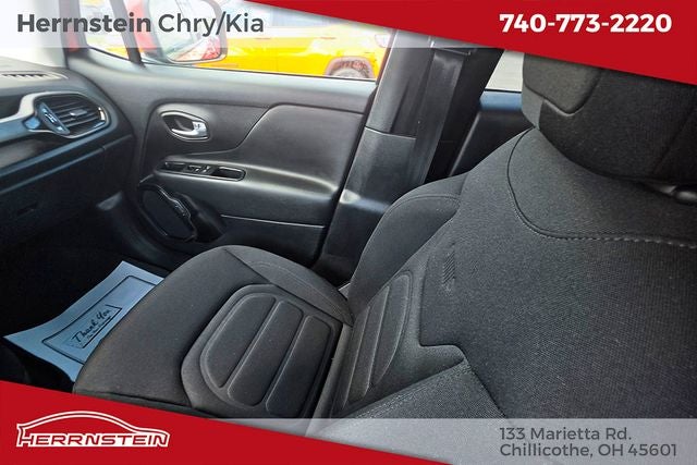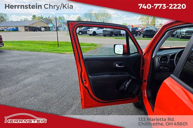 Herrnstein Auto Group is pumped up to offer this 2017 Jeep Renegade Altitude in Omaha Orange with Black Cloth. This Renegade is very well equipped with Altitude Package, Quick Order Package 21L Altitude (Black Day Light Opening Moldings, Deluxe Cloth High-Back Bucket Seats, Exterior Mirrors w/Supplemental Signals, Gloss Black Badging, Gloss Black Fascia Applique, Gloss Black Instrument Panel Bezels, Vinyl Door Trim Panel, and Wheels: 18 x 8.0 Gloss Black), Quick Order Package 27L Altitude, 16 x 6.5 Aluminum Wheels, 4-Wheel Disc Brakes, 6 Speakers, ABS brakes, Air Conditioning, Alloy wheels, AM/FM radio: SiriusXM, Anti-whiplash front head restraints, Brake assist, Cloth Low-Back Bucket Seats, Compass, Delay-off headlights, Driver door bin, Driver vanity mirror, Dual front impact airbags, Dual front side impact airbags, Electronic Stability Control, Four wheel independent suspension, Front anti-roll bar, Front Bucket Seats, Front Center Armrest, Front fog lights, Front reading lights, Fully automatic headlights, Heated door mirrors, Illuminated entry, Knee airbag, Leather steering wheel, Low tire pressure warning, Manufacturer's Statement of Origin, Normal Duty Suspension, Occupant sensing airbag, Outside temperature display, Overhead airbag, Overhead console, Panic alarm, ParkView Rear Back-Up Camera, Passenger door bin, Passenger vanity mirror, Power door mirrors, Power steering, Power windows, Radio data system, Radio: Uconnect 3 w/5 Display, Rear anti-roll bar, Rear window defroster, Rear window wiper, Remote keyless entry, Roof rack: rails only, Speed control, Split folding rear seat, Spoiler, Steering wheel mounted audio controls, Tachometer, Telescoping steering wheel, Tilt steering wheel, Traction control, Trip computer, Variably intermittent wipers, and Voltmeter. 21/29 City/Highway MPG