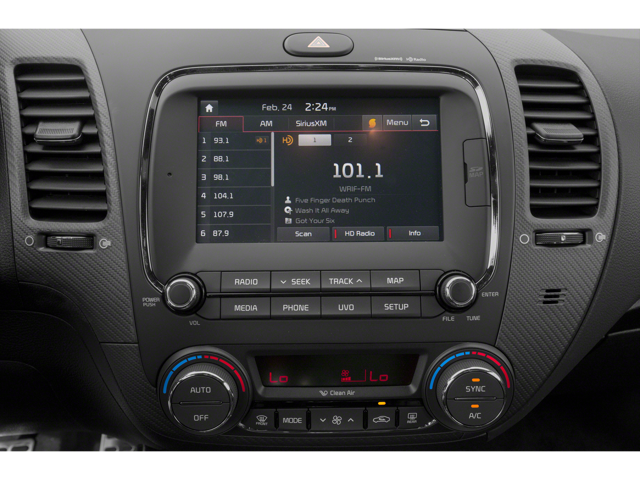 - Radio: UVO eServices Infotainment AM/FM/MP3 Audio -inc: SiriusXM satellite radio, Apple CarPlay, Android Auto, USB/auxiliary input jacks, 7" touch-screen display, rearview camera, 6 speakers including tweeter speakers, Bluetooth® wireless technology w/voice recognition, and steering-wheel-mounted audio controls