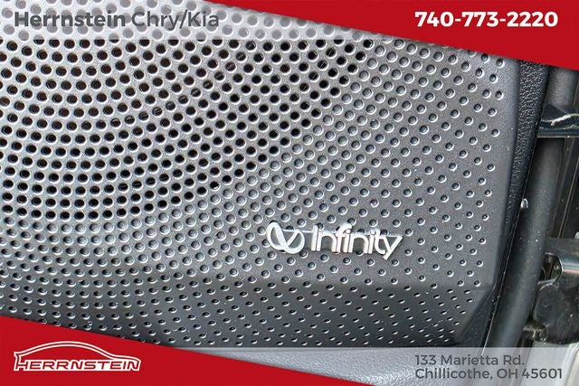 - Radio: AM/FM 8" Display Audio -inc: Infinity premium audio w/external amp, 8 speakers including subwoofer, SiriusXM satellite radio, Bluetooth® hands free phone w/voice recognition, Apple CarPlay, Android Auto, active sound design, Blue Link (Gen2), rearview camera w/dynamic guidelines, Smartphone/MP3 auxiliary input jack, wireless charging pad, dual USB chargers and speed sensitive auto volume control