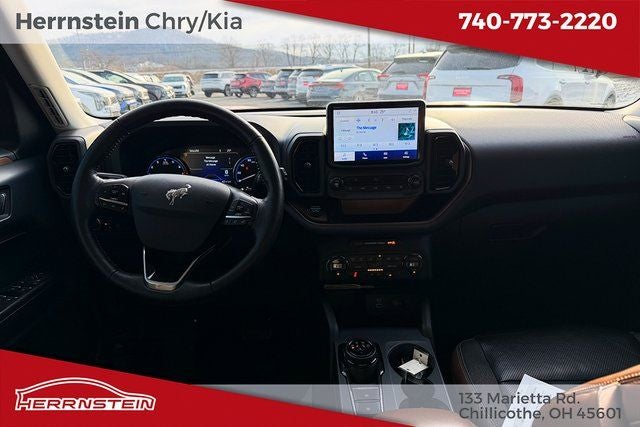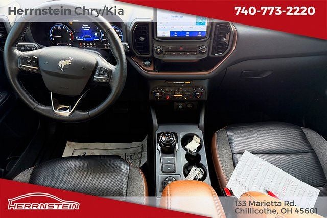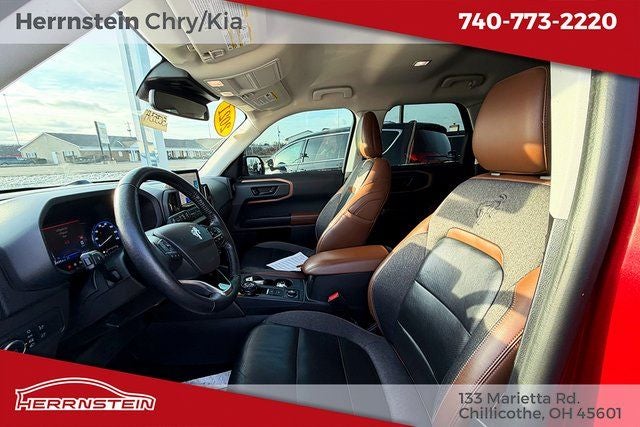 Herrnstein Auto Group is very proud to offer this 2021 Ford Bronco Sport Outer Banks in Red with Ebony/Brown Leather. This Bronco Sport is very well equipped with 1 Owner, Accident Free History Report, Alloy Wheels, XM/Sirius Satellite Radio, iPod / USB Port, Auxiliary Audio Port, Backup Camera, Touchscreen Control Center, Bluetooth®, Voice Recognition, Apple CarPlay, Android Auto, Fog Lights, Remote Start, Heated Steering Wheel, Heated Mirrors, Heated Seats, and Blind Spot Monitor Equipment Group 300A, 4WD, 3.80 Axle Ratio, 4-Wheel Disc Brakes, 6 Speakers, ABS brakes, Air Conditioning, Alloy wheels, AM/FM radio: SiriusXM, AM/FM Stereo, Auto High-beam Headlights, Auto-dimming Rear-View mirror, Automatic temperature control, Brake assist, Cargo Mat, Compass, Delay-off headlights, Driver door bin, Driver vanity mirror, Dual front impact airbags, Dual front side impact airbags, Electronic Stability Control, Emergency communication system: SYNC 3 911 Assist, Exterior Parking Camera Rear, Four wheel independent suspension, Front & Rear Floor Liners, Front anti-roll bar, Front Bucket Seats, Front Center Armrest, Front dual zone A/C, Front fog lights, Front reading lights, Fully automatic headlights, Heated door mirrors, Heated front seats, Heated steering wheel, Illuminated entry, Knee airbag, Leather Trimmed Heated Sport Contour Bucket Seats, Low tire pressure warning, Occupant sensing airbag, Outside temperature display, Overhead airbag, Overhead console, Panic alarm, Passenger door bin, Passenger vanity mirror, Power door mirrors, Power driver seat, Power passenger seat, Power steering, Power windows, Radio data system, Rain sensing wipers, Rear anti-roll bar, Rear Parking Sensors, Rear reading lights, Rear seat center armrest, Rear window defroster, Rear window wiper, Remote keyless entry, Roof rack: rails only, Security system, SiriusXM Radio, Speed control, Speed-sensing steering, Speed-Sensitive Wipers, Split folding rear seat, Steering wheel mounted audio controls, SYNC 3 Communications & Entertainment System, SYNC 3/Apple CarPlay/Android Auto, Tachometer, Telescoping steering wheel, Tilt steering wheel, Traction control, Trip computer, Variably intermittent wipers, and Wheels: 18 Ebony Black-Painted Aluminum. 25/28 City/Highway MPG