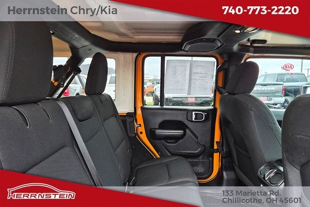 Herrnstein Auto Group is excited to offer this 2021 Jeep Wrangler Unlimited Willys in Nacho Clearcoat with Black Cloth. This Wrangler is very well equipped with Accident Free History Report, Alloy Wheels, XM/Sirius Satellite Radio, iPod / USB Port, Auxiliary Audio Port, Backup Camera, Touchscreen Control Center, uConnect, Bluetooth®, Voice Recognition, Apple CarPlay, Android Auto, Heated Mirrors, and Running Boards Dual Top Group (Black 3-Piece Hard Top, Freedom Panel Storage Bag, No Soft Top, Premium Black Sunrider Soft Top w/Dual Top Group, Rear Window Defroster, and Rear Window Wiper/Washer), LED Headlamp & Fog Lamp Group (Front LED Fog Lamps and LED Premium Reflector Headlamps), Quick Order Package 22W Willys (4-Wheel Drive Swing Gate Decal, Anti-Spin Differential Rear Axle, Automatic Headlamps, Black Grille, Black Trail Rated Badge, Deep Tint Sunscreen Windows, Front 1-Touch Down Power Windows, Leather Wrapped Steering Wheel, Matte Black Jeep Badge, Mold In Color Bumper w/Gloss Black, MOPAR All-Weather Floor Mats, Power Heated Mirrors, Remote Keyless Entry, Security Alarm, Speed Sensitive Power Locks, Sun Visors w/Illuminated Vanity Mirrors, Wheels: 17 x 7.5 Moab Black Aluminum, Willys, Willys Hood Decal, and Wrangler Decal), Technology Group (7.0 Touchscreen Display, Air Conditioning w/Auto Temperature Control, Air Filtering, Apple CarPlay, Cluster 7.0 TFT Color Display, For More Info, Call 800-643-2112, Google Android Auto, GPS Antenna Input, Integrated Center Stack Radio, Radio: Uconnect 4 w/7 Display, SiriusXM Radio Service, SiriusXM Satellite Radio, and USB Host Flip), Wrangler Unlimited Willys, Nacho Clearcoat, 3.45 Rear Axle Ratio, 4-Wheel Disc Brakes, 8 Speakers, ABS brakes, Air Conditioning, AM/FM radio, Aux Battery, Brake assist, Cloth Low-Back Bucket Seats, Compass, Delay-off headlights, Driver door bin, Driver vanity mirror, Dual front impact airbags, Dual front side impact airbags, Electronic Stability Control, Front anti-roll bar, Front Bucket Seats, Front Center Armrest w/Storage, Front fog lights, Front reading lights, Integrated roll-over protection, Low tire pressure warning, MOPAR All-Weather Floor Mats (DISC), Non-Lock Fuel Cap w/o Discriminator, Normal Duty Suspension, Occupant sensing airbag, Outside temperature display, ParkView Rear Back-Up Camera, Passenger door bin, Passenger vanity mirror, Power steering, Radio data system, Radio: Uconnect 3 w/5 Display, Rear anti-roll bar, Rear reading lights, Speed control, Split folding rear seat, Steering wheel mounted audio controls, Stop-Start Dual Battery System, Tachometer, Telescoping steering wheel, Tilt steering wheel, Traction control, Trip computer, Variably intermittent wipers, and Wheels: 17 x 7.5 Black Steel Styled.
