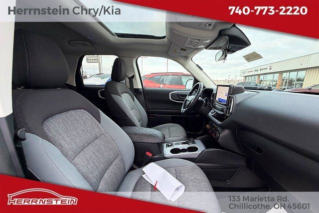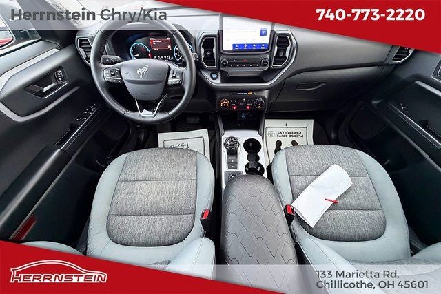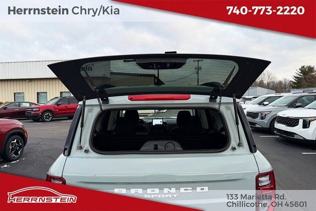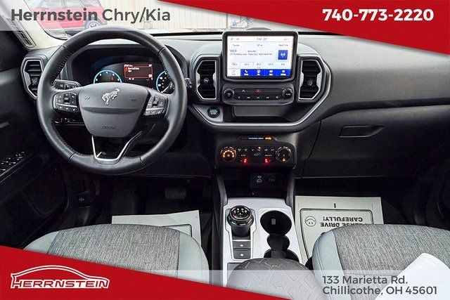 Herrnstein Auto Group is excited to offer this 2022 Ford Bronco Sport Big Bend in Cactus Gray with Medium Dark Slate Cloth. This Bronco Sport is very well equipped with 1 Owner, Accident Free History Report, Alloy Wheels, XM/Sirius Satellite Radio, iPod / USB Port, Auxiliary Audio Port, Backup Camera, Touchscreen Control Center, GPS / Navigation System, Bluetooth®, Voice Recognition, Apple CarPlay, Android Auto, Fog Lights, Trailer Tow Package, Remote Start, Heated Mirrors, Heated Seats, Sunroof / Moonroof, Blind Spot Monitor, Adaptive Cruise Control, and Collision Avoidance System Class II Trailer Tow Package w/Trailer Sway Control, Convenience Package (Front Driver & Passenger Seatback Zipper Pockets, Heated Front Bucket Seats, Intelligent Access (Lock/Unlock), Leather-Wrapped Steering Wheel, LED Fog Lamps, Rear Parking Sensors, Universal Garage Door Opener (UGDO), and Wireless Charging Pad), Equipment Group 200A, Ford Co-Pilot360 Assist+ (Evasive Steering Assist, Intelligent Adaptive Cruise Control w/Stop & Go, and Voice-Activated Touchscreen Navigation System), 3.80 Axle Ratio, 4-Wheel Disc Brakes, 4G LTE Wi-Fi Hotspot Credit, 6 Speakers, ABS brakes, Air Conditioning, Alloy wheels, AM/FM radio: SiriusXM, AM/FM Stereo, Auto High-beam Headlights, Automatic temperature control, Brake assist, Cargo Management System, Compass, Delay-off headlights, Driver door bin, Driver vanity mirror, Dual front impact airbags, Dual front side impact airbags, Electronic Stability Control, Emergency communication system: SYNC 3 911 Assist, Four wheel independent suspension, Front anti-roll bar, Front Bucket Seats, Front Center Armrest, Front reading lights, Fully automatic headlights, Heated door mirrors, Illuminated entry, Knee airbag, Low tire pressure warning, Occupant sensing airbag, Outside temperature display, Overhead airbag, Overhead console, Panic alarm, Passenger door bin, Passenger vanity mirror, Power door mirrors, Power Moonroof, Power steering, Power windows, Radio data system, Rear anti-roll bar, Rear reading lights, Rear seat center armrest, Rear window defroster, Rear window wiper, Remote keyless entry, Roof rack: rails only, Rubberized Second Row Seat Backs, Security system, SiriusXM Radio, Speed control, Speed-sensing steering, Speed-Sensitive Wipers, Split folding rear seat, Steering wheel mounted audio controls, SYNC 3 Communications & Entertainment System, SYNC 3/Apple CarPlay/Android Auto, Tachometer, Telescoping steering wheel, Tilt steering wheel, Traction control, Trip computer, Unique Cloth Front Bucket Seats, Variably intermittent wipers, and Wheels: 17 Carbonized Gray-Painted Aluminum. 25/28 City/Highway MPG