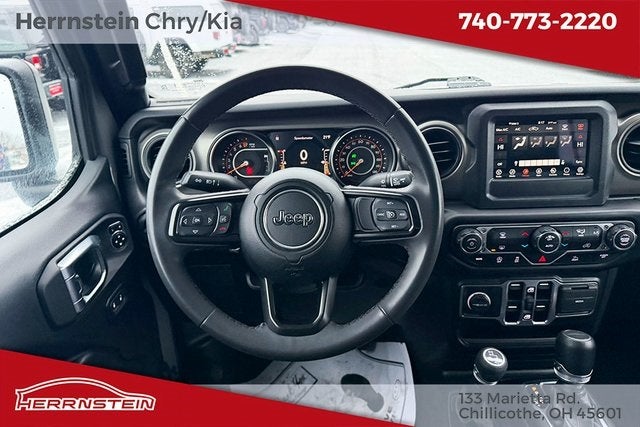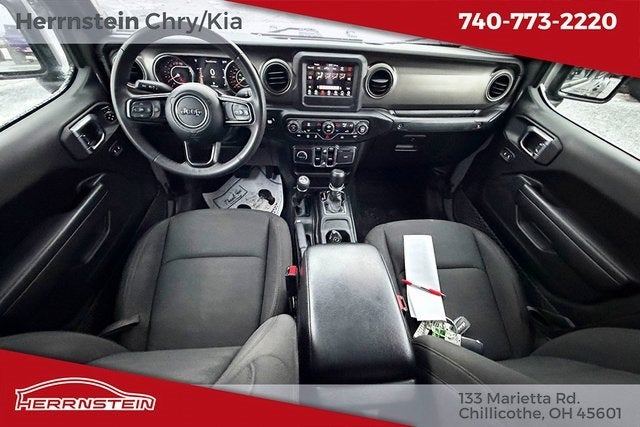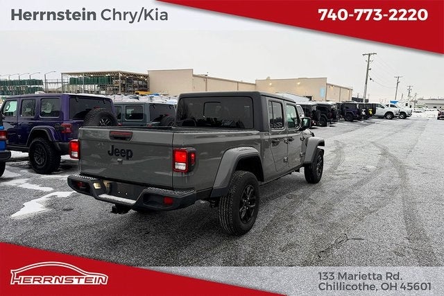 Herrnstein Auto Group is pleased to offer this 2023 Jeep Gladiator Sport in Sting-Gray Clearcoat with Black Cloth. This Gladiator is very well equipped with 1 Owner, Accident Free History Report, Alloy Wheels, XM/Sirius Satellite Radio, iPod / USB Port, Auxiliary Audio Port, Backup Camera, Touchscreen Control Center, uConnect, Bluetooth®, Voice Recognition, Apple CarPlay, Android Auto, Fog Lights, Trailer Tow Package, Remote Start, and Heated Mirrors Convenience Group (Daytime Running Lamp System and Universal Garage Door Opener), LED Headlamp & Fog Lamp Group (Daytime Running Lamps LED Accents, Front LED Fog Lamps, and LED Premium Reflector Headlamps), Popular Equipment Package (Black 3-Piece Hard Top, Freedom Panel Storage Bag, Rear Sliding Window, and Rear Window Defroster), Quick Order Package 24S Sport S (Automatic Headlamps, Deep Tint Sunscreen Windows, Front 1-Touch Down Power Windows, Normal Duty Plus Suspension, Power Heated Mirrors, Power Tailgate Lock, Premium Wrapped Steering Wheel, Remote Keyless Entry, Security Alarm, Speed Sensitive Power Locks, Sport S, Sun Visors w/Illuminated Vanity Mirrors, and Wheels: 17 x 7.5 Tech Silver Aluminum), Technology Group (Air Conditioning w/Auto Temperature Control, Cluster 7.0 TFT Color Display, For More Info, Call 800-643-2112, Front Door Locks 2-Door Passive Entry, GPS Antenna Input, SiriusXM Radio Service, and SiriusXM Satellite Radio), Trailer Tow Package (240 Amp Alternator, Class IV Receiver Hitch, Heavy-Duty Engine Cooling, and Trailer Hitch Zoom), 3.73 Rear Axle Ratio, 4-Wheel Disc Brakes, 4G LTE Wi-Fi Hot Spot, 8 Speakers, ABS brakes, Air Conditioning, AM/FM radio, Apple CarPlay, Apple CarPlay/Android Auto, Brake assist, Cloth Low-Back Bucket Seats, Compass, Delay-off headlights, Driver door bin, Driver vanity mirror, Dual front impact airbags, Dual front side impact airbags, Electronic Stability Control, Emergency communication system, Front anti-roll bar, Front Bucket Seats, Front Center Armrest w/Storage, Front Door Locks 2-Door Passive Entry (DISC), Front fog lights, Front License Plate Bracket, Front reading lights, Google Android Auto, Integrated Center Stack Radio, Integrated roll-over protection, Integrated Voice Command w/Bluetooth®, Low tire pressure warning, MOPAR All-Weather Slush Mats, MOPAR Satin Black Grille, No Soft Top, Normal Duty Suspension, Occupant sensing airbag, Outside temperature display, ParkView Rear Back-Up Camera, Passenger door bin, Passenger vanity mirror, Power steering, Radio data system, Radio: Uconnect 4 w/7 Display, Rear anti-roll bar, Rear reading lights, Speed control, Split folding rear seat, Steering wheel mounted audio controls, Tachometer, Telescoping steering wheel, Tilt steering wheel, Traction control, Trip computer, USB Host Flip, Variably intermittent wipers, Wheels: 17 x 7.5 Black Steel Styled, and Wheels: 17 x 7.5 Gloss Black Aluminum.