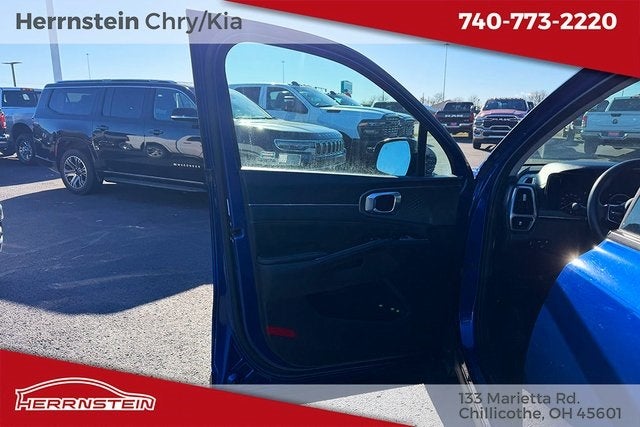 Herrnstein Auto Group is pumped up to offer this 2023 Kia Sorento SX in Sapphire Blue with Black Artificial Leather. This Sorento is very well equipped with 1 Owner, Accident Free History Report, Alloy Wheels, XM/Sirius Satellite Radio, Premium Audio Package, iPod / USB Port, Auxiliary Audio Port, Backup Camera, Touchscreen Control Center, Kia Connect, GPS / Navigation System, Bluetooth®, Voice Recognition, Apple CarPlay, Android Auto, Fog Lights, 3rd Row Seating, Remote Start, Heated Mirrors, Heated Seats, Lane Keeping Assist, Blind Spot Monitor, Adaptive Cruise Control, Collision Avoidance System, and Active Parking Assist AWD, Navigation System, Power moonroof, 3.316 Axle Ratio, 3rd row seats: split-bench, 4-Wheel Disc Brakes, 6 Speakers, ABS brakes, Air Conditioning, Alloy wheels, AM/FM radio: SiriusXM, Apple CarPlay & Android Auto, Auto High-beam Headlights, Auto-dimming Rear-View mirror, Automatic temperature control, Brake assist, Bumpers: body-color, Cargo Cover, Carpet Floor Mats, Delay-off headlights, Driver door bin, Driver vanity mirror, Dual front impact airbags, Dual front side impact airbags, Electronic Stability Control, Emergency communication system, Exterior Parking Camera Rear, Folding Cargo Tray, Four wheel independent suspension, Front anti-roll bar, Front Bucket Seats, Front Center Armrest, Front dual zone A/C, Front fog lights, Front reading lights, Fully automatic headlights, Heated door mirrors, Heated Front Bucket Seats, Heated front seats, Illuminated entry, Knee airbag, Leather steering wheel, Low tire pressure warning, Occupant sensing airbag, Outside temperature display, Overhead airbag, Overhead console, Panic alarm, Passenger door bin, Passenger vanity mirror, Power door mirrors, Power driver seat, Power Liftgate, Power passenger seat, Power steering, Power windows, Radio data system, Radio: AM/FM Audio System, Rain sensing wipers, Rear air conditioning, Rear anti-roll bar, Rear reading lights, Rear window defroster, Rear window wiper, Rear-Seat Entertainment, Remote keyless entry, Roof rack: rails only, Security system, Smart Key w/ Push Button and Remote Start, Speed control, Speed-sensing steering, Split folding rear seat, Spoiler, Steering wheel mounted audio controls, SynTex Artificial Leather Seat Trim, Tachometer, Telescoping steering wheel, Textured Rear Bumper Applique, Tilt steering wheel, Traction control, Trip computer, Turn signal indicator mirrors, Variably intermittent wipers, and Wheels: 8.5J x 20 Gloss Black Alloy. 22/27 City/Highway MPG