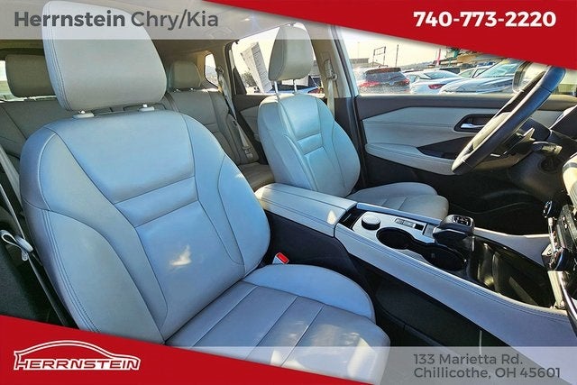Herrnstein Auto Group is proud to offer this 2023 Nissan Rogue SL in Pearl White Tricoat with Light Gray Leather. This Rogue is very well equipped with 1 Owner, Alloy Wheels, XM/Sirius Satellite Radio, iPod / USB Port, Auxiliary Audio Port, Backup Camera, Touchscreen Control Center, GPS / Navigation System, Bluetooth®, Voice Recognition, Apple CarPlay, Android Auto, Fog Lights, Blind Spot Monitor, and Adaptive Cruise Control SL Premium Package (Bose Premium Audio System, Front, Side & Rear Sonar, Motion Activated Power Liftgate, ProPILOT Assist w/Navi-link, Radio: AM/FM NissanConnect w/Navigation, Rear Door Sunshades, Traffic Sign Recognition, and Tri-Zone HVAC), Rogue SL, 1.5L I3 Turbocharged DOHC 12V LEV3-ULEV50 201hp, AWD, 19 Aluminum Alloy Wheels, 4-Wheel Disc Brakes, 5.604 Axle Ratio, 6 Speakers, ABS brakes, Air Conditioning, Alloy wheels, AM/FM Radio, AM/FM radio: SiriusXM, Auto High-beam Headlights, Auto-dimming Rear-View mirror, Automatic temperature control, Black Splash Guards (Set of 4), Brake assist, Bumpers: body-color, Chrome Rear Bumper Protector, Delay-off headlights, Driver door bin, Driver vanity mirror, Dual front impact airbags, Dual front side impact airbags, Electronic Stability Control, Emergency communication system: NissanConnect Services, First Aid Kit, Floor Mats w/2-Piece Cargo Area Protector, Four wheel independent suspension, Frameless Rearview Mirror w/Universal Remote, Front anti-roll bar, Front Bucket Seats, Front Center Armrest, Front dual zone A/C, Front reading lights, Fully automatic headlights, Heated door mirrors, Heated Front Bucket Seats, Heated front seats, Heated steering wheel, Illuminated entry, Illuminated Kick Plates, Knee airbag, Leather steering wheel, Leather-Appointed Seat Trim, Low tire pressure warning, Memory seat, NissanConnect featuring Apple CarPlay and Android Auto, Occupant sensing airbag, Outside temperature display, Overhead airbag, Overhead console, Panic alarm, Passenger door bin, Passenger vanity mirror, Power door mirrors, Power driver seat, Power Liftgate, Power moonroof, Power passenger seat, Power steering, Power windows, Radio data system, Rear anti-roll bar, Rear Parking Sensors, Rear reading lights, Rear seat center armrest, Rear side impact airbag, Rear window defroster, Rear window wiper, Remote keyless entry, Security system, Speed control, Speed-Sensitive Wipers, Split folding rear seat, Spoiler, Steering wheel mounted audio controls, Tachometer, Telescoping steering wheel, Tilt steering wheel, Traction control, Trip computer, Turn signal indicator mirrors, and Variably intermittent wipers. 28/34 City/Highway MPG