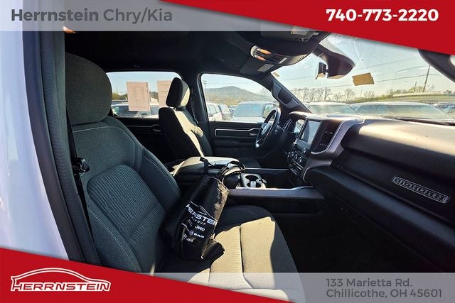 Herrnstein Auto Group is very proud to offer this 2023 Ram 1500 Big Horn/Lone Star in Bright White Clearcoat with Black Cloth. This 1500 is very well equipped with Big Horn Level 1 Equipment Group (2nd Row In Floor Storage Bins, 4G LTE Wi-Fi Hot Spot, 8.4 Touchscreen Display, Apple CarPlay, Auto-Dimming Exterior Driver Mirror, Auto-Dimming Rear-View Mirror, Black Exterior Mirrors, Black Premium Power Mirrors, Bluetooth® Handsfree Phone & Audio, Class IV Receiver Hitch, Connectivity - US/Canada, Convex Wide-Angle Exterior Mirror Insert, Electric Shift-On-Demand Transfer Case, Exterior Mirrors Courtesy Lamps, Exterior Mirrors w/Heating Element, Exterior Mirrors w/Supplemental Signals, For Details, Visit DriveUconnect.com, For More Info, Call 800-643-2112, Front Fog Lamps, Glove Box Lamp, Google Android Auto, GPS Antenna Input, Heated Front Seats, Heated Steering Wheel, Integrated Center Stack Radio, Passenger Sun Visor w/Illuminated Mirror, Power-Folding Mirrors, Radio: Uconnect 5 W w/8.4 Display, Rear Dome w/On/Off Switch Lamp, Rear Power Sliding Window, Rear Window Defroster, SiriusXM Satellite Radio, and USB Host Flip), Quick Order Package 23Z Big Horn (Big Horn Badge), Quick Order Package 27Z Big Horn, 3 Rear Seat Head Restraints, 4 Way Front Headrests, 4-Wheel Disc Brakes, 48V Belt Starter Generator, 6 Speakers, 9 Amplified Speakers w/Subwoofer, ABS brakes, Air Conditioning, Alloy wheels, AM/FM radio, Brake assist, Bumpers: chrome, Cloth Bench Seat, Compass, Delay-off headlights, Driver door bin, Dual front impact airbags, Dual front side impact airbags, Electronic Stability Control, Emergency communication system: SiriusXM Guardian, Front anti-roll bar, Front Center Armrest w/Storage, Front License Plate Bracket, Front reading lights, Front Seat Back Map Pockets, Front wheel independent suspension, Fully automatic headlights, Global Telematics Box Module (TBM), Heated door mirrors, Illuminated entry, Integrated Voice Command w/Bluetooth®, Leather steering wheel, Low tire pressure warning, MOPAR Front & Rear Rubber Floor Mats, Occupant sensing airbag, Outside temperature display, Overhead airbag, Overhead console, Panic alarm, ParkView Rear Back-Up Camera, Passenger door bin, Passenger vanity mirror, Power door mirrors, Power steering, Power windows, Radio data system, Radio: Uconnect 3 w/5 Display, RAM Grille Badge - Chrome, Rear 60/40 Folding Seat, Rear anti-roll bar, Rear seat center armrest, Rear step bumper, Remote keyless entry, Remote Start System, Speed control, Split folding rear seat, Steering wheel mounted audio controls, Tachometer, Telescoping steering wheel, Tilt steering wheel, Traction control, Trailer Brake Control, Trip computer, Variably intermittent wipers, Voltmeter, and Wheels: 18 x 8 Cast-Aluminum Painted.