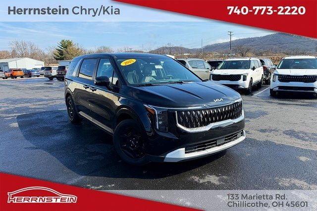 Herrnstein Auto Group is pumped up to offer this 2025 Kia Carnival LXS in Aurora Black Pearl with Taupe/Off-Black Artificial Leather. This Carnival is very well equipped with 1 Owner, Accident Free History Report, Alloy Wheels, XM/Sirius Satellite Radio, iPod / USB Port, Auxiliary Audio Port, Backup Camera, Touchscreen Control Center, Kia Connect, GPS / Navigation System, Bluetooth®, Voice Recognition, Apple CarPlay, Android Auto, 3rd Row Seating, Remote Start, Heated Seats, Lane Keeping Assist, and Collision Avoidance System Navigation system: AVN 5.0 Navigation System, 3.51 Axle Ratio, 3rd row seats: split-bench, 4-Wheel Disc Brakes, 6 Speakers, 6.5J x 17 Alloy Wheels, ABS brakes, Air Conditioning, Alloy wheels, AM/FM radio: SiriusXM, Apple CarPlay & Android Auto, Artificial Leather Seat Trim, Auto High-beam Headlights, Automatic temperature control, Brake assist, Bumpers: body-color, Carpeted Floor Mats (8-Passenger), Compass, Delay-off headlights, Driver door bin, Driver vanity mirror, Dual front impact airbags, Dual front side impact airbags, Electronic Stability Control, Emergency communication system, Exterior Parking Camera Rear, Four wheel independent suspension, Front anti-roll bar, Front Bucket Seats, Front Center Armrest, Front dual zone A/C, Front reading lights, Fully automatic headlights, Heated door mirrors, Heated Front Bucket Seats, Heated front seats, Illuminated entry, Knee airbag, Leather Shift Knob, Leather steering wheel, Low tire pressure warning, Occupant sensing airbag, Outside temperature display, Overhead airbag, Overhead console, Panic alarm, Passenger door bin, Passenger vanity mirror, Power door mirrors, Power driver seat, Power steering, Power windows, Radio: AM/FM/HD Audio System, Rear air conditioning, Rear anti-roll bar, Rear reading lights, Rear window defroster, Rear window wiper, Reclining 3rd row seat, Remote keyless entry, Security system, Speed control, Speed-sensing steering, Split folding rear seat, Spoiler, Steering wheel mounted audio controls, Tachometer, Telescoping steering wheel, Tilt steering wheel, Traction control, Trailer Prewire Harness, Trip computer, Turn signal indicator mirrors, and Variably intermittent wipers. 18/26 City/Highway MPG